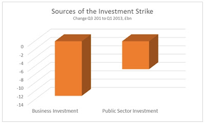 It remains the case that it is private firms which are driving the slump in investment. But the government’s austerity policy includes a sharp cut in its own investment, which has exacerbated the slump.
