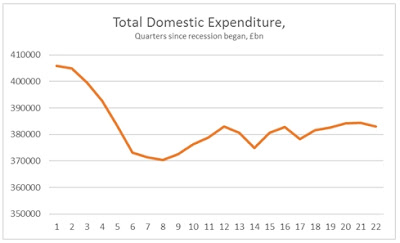 Since the Tory-led Coalition’s Spending Review of 2010 total domestic expenditure has risen by just £864mn. Statistically, in terms of a £1.5 trillion economy, the change in total domestic expenditure has been zero.