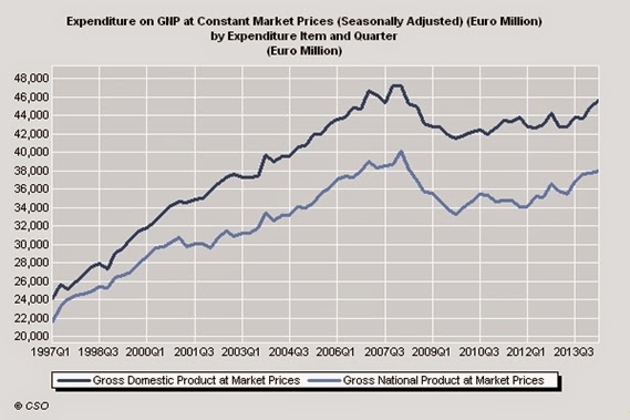 The low-point for the Irish economy was reached in the 4th quarter of 2009. There is not yet a recovery. But there is a rebound from that low-point, which has not always made smooth progress. Every year since 2009 has seen at least one quarter of economic contraction. It is hoped that 2014 will be different.