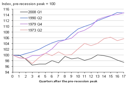 Fig.2 Productivity (output per hour) trends following recessions