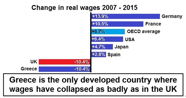 In reality, the German economy is a much more highly productive economy than the UK, about 30% higher. This is based on much greater openness to the world economy and much higher levels of investment over a prolonged period. This allows both higher wages and higher wage growth than the UK. It is the exceptionally low level of UK investment combined with the economy’s long-term structural weaknesses which have caused the depth of the crisis here and the fall in real wages. Migrants have not cut British wages. British bosses have.