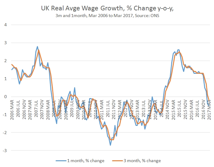 This fall has now resumed once more because of the combination of stagnation in wage growth and rising prices. The rise in prices is a Brexit effect, after the sharp devaluation of the pound following the referendum result in June 2016. It is ridiculous for Theresa May to suggest the falling pound and therefore the fall in real wages, is not the result of the Brexit vote.