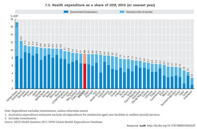 The NHS is not just cyclically but is structurally underfunded. At 9.7% of GDP UK spending remains above the OECD average, as shown in Chart 2 below. But this includes economies whose per capita incomes are way below that of the UK. Almost all the countries with lower health spending are poorer than the UK. In addition, as UK real GDP growth has been exceptionally weak, this flatters the level of spending on health care.