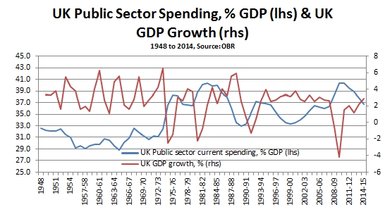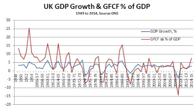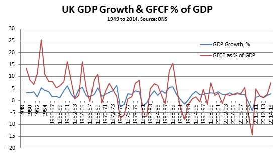 A key factor in that decline and a product of it is the structure of the British economy, with a very large financial sector and an industrial sector which has declined in relative terms for over a hundred years. (The industrial decline is now also absolute. Industrial production was lower in October 2015 than in the same month in 1988).